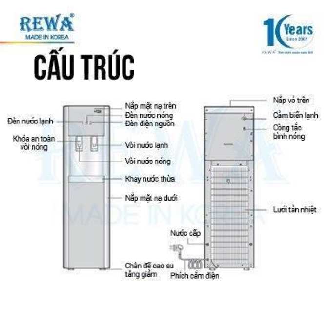 Nhiệt độ nước được tự động nấu sẵn liên tục để pha những ly trà nóng, hay một ly nước mát để giải khát mùa hè. Máy lọc nước nóng lạnh thể hiện sự cao cấp với những tính năng hiện đại, đem đến một không gian sang trọng cho gia đình. Vòi nước bằng nhựa ABS chịu lực cực tốt, bên vòi nóng có khóa, phù hợp cho gia đình có trẻ nhỏ.